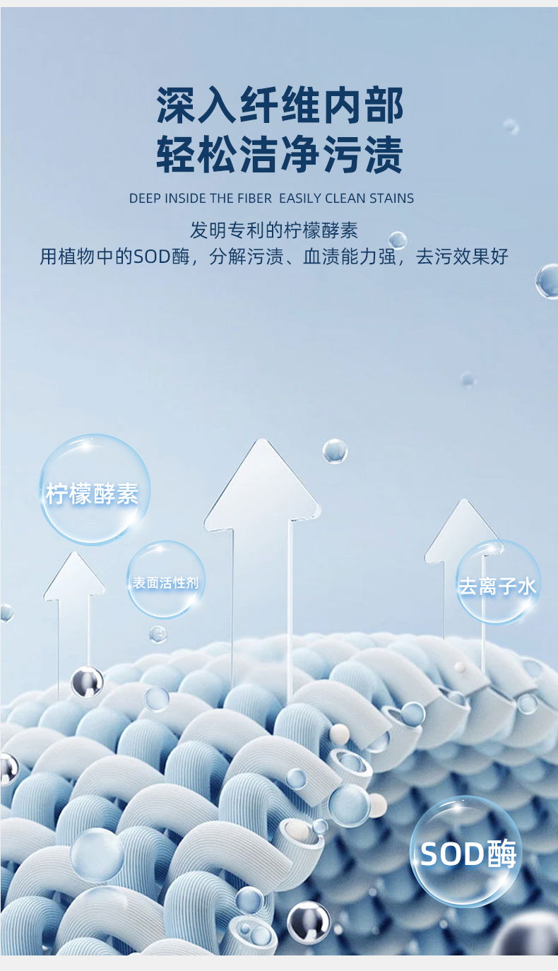 · 专利柠檬酵素用植物中的sod酶,分解污渍、血渍能力强,去污效果好