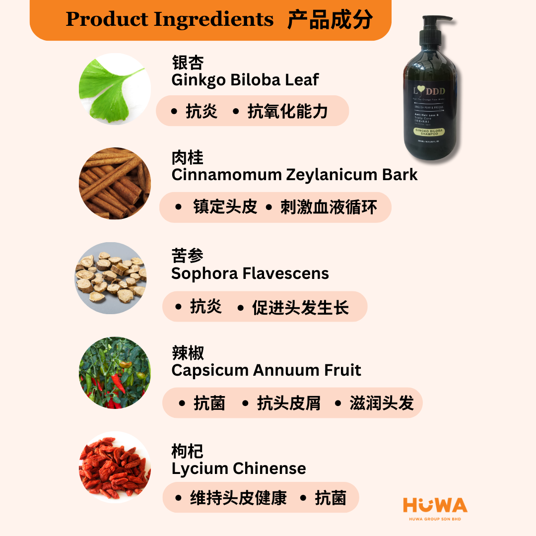 HW28 - LYDDD GINGKO BILOBA SHAMPOO 银杏洗发液 (500ml)